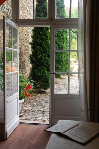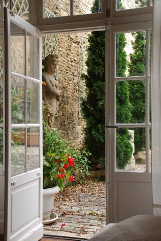 C'est l'un des endroits les plus charmants de l'Hôtel avec deux grandes portes vitrées ouvrant sur la cour. Salle d'entrée. Chambre-bureau. Cuisine. Salle de douche. Toilettes.